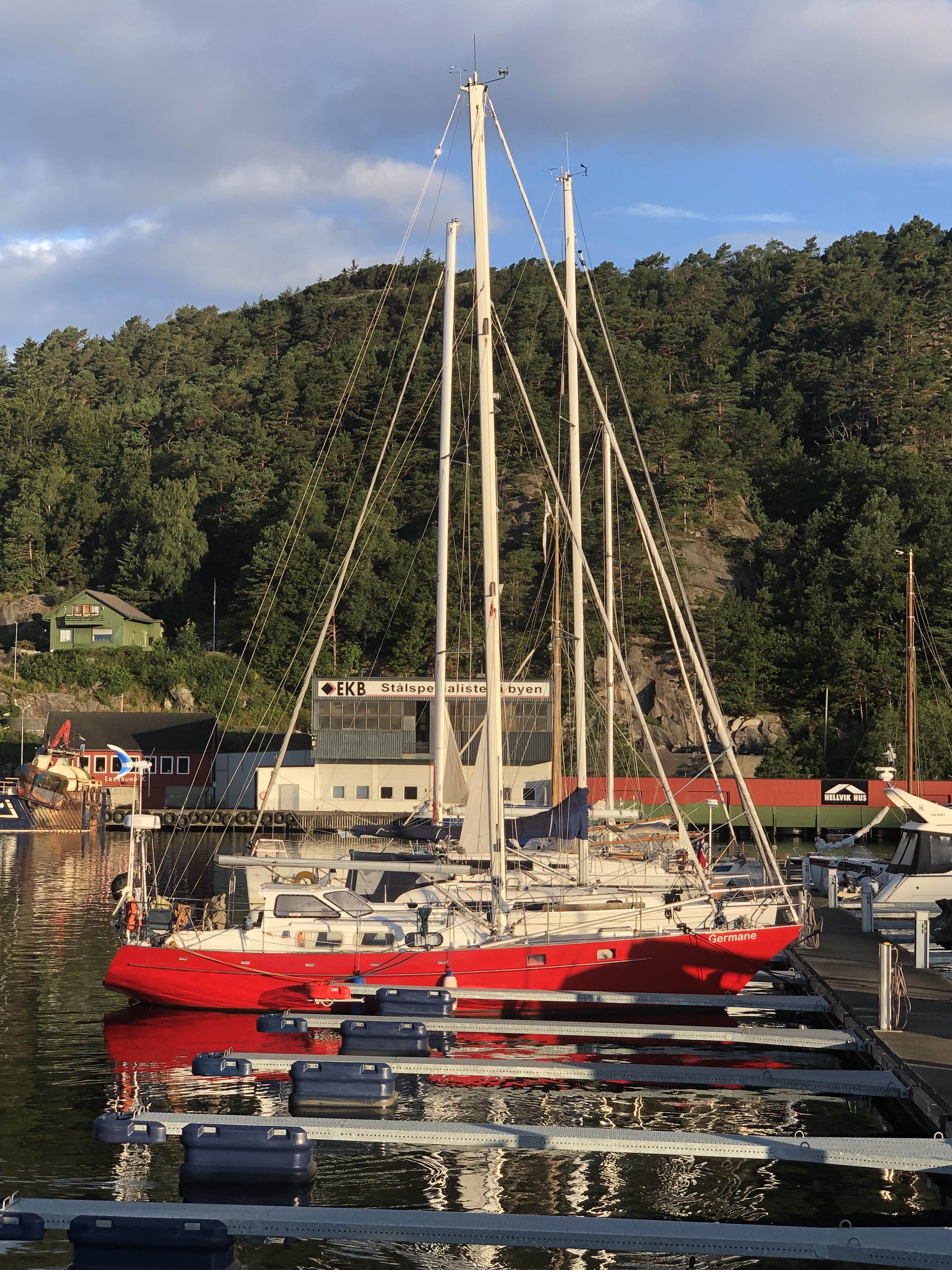 07.08.2022 FLEKKEFJORD Doch noch Sommer! Die 42 Seemeilen von EGERSUND hierher waren schön zu „segeldieseln“. Die Genua hat ein bisschen mitgeholfen aber unser „Onkel Günter“ (NANNI Diesel) hat bei wenig Wind für 4L/h die Arbeit übernommen. Von den spektakulären Fjorden weiter im Norden verwöhnt sehen wir auch hier viele schöne Ecken. Wir fahren hinter der Insel HIDRA an einigen Fischfarmen vorbei, fummeln uns durch ein paar Engstellen Richtung Norden und sehen von weitem schon die HEIMKEHR VII von Marlene & Bert. Wir freuen uns über das Wiedersehen und es ergibt sich mit zwei weiteren Yachten aus CUXHAVEN ein nettes Treffen unter TRANS OCEAN e.V. – Crews. Als einige Tage später unsere Freunde und Liegeplatznachbarn aus CUXHAVEN mit ihrer SENJA einlaufen ist die Runde komplett.