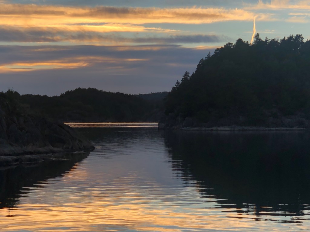 18.08.2022 BLINDLEIA Ankerbucht 58°12’52N 008°20’30E Noch in MANDAL liegend hat auch ein deutscher Einhandsegler die auf seiner Reise anfallenden Motorstunden unterschätzt. Hinzu kommt, dass seine Lichtmaschine die Batterien nicht mehr lädt und ein Termin in der ortsansässigen Werft zeitnah nicht zu bekommen ist. Dirk unterstützt daher spontan bei Motorservice und Reparatur. Dieser „Hilfseinsatz“ führt uns wieder einmal vor Augen wie wertvoll die Fähigkeit ist viele technische Herausforderungen selbst zu erledigen. Müssten wir alles in Auftrag geben, würde dies das zur Verfügung stehende Reisebudget sprengen. Somit geht es ein paar Stunden später als ursprünglich geplant entlang der Küste nach Nordosten. Das Fahrwasser BLINDLEIA, welches durch die vorgelagerten Schären zwischen KRISTIANSAND und LILLESTAD hindurch führt, hatte uns bereits auf dem Hinweg gut gefallen. Unterwegs begegnen uns nur wenige Yachten, die Haupturlaubszeit scheint vorbei zu sein. Recht kurzfristig entschließen wir uns daher in einer einladenden Bucht inmitten bewaldeter Schären zu ankern. Erstaunlicherweise ist die Internetverbindung an diesem abgelegenen Ort so gut, dass Simone ihren freitäglichen Arbeitstag im „Boat Office Day“ vor Anker liegend versehen kann und wir auch den nächsten Tag noch bleiben.