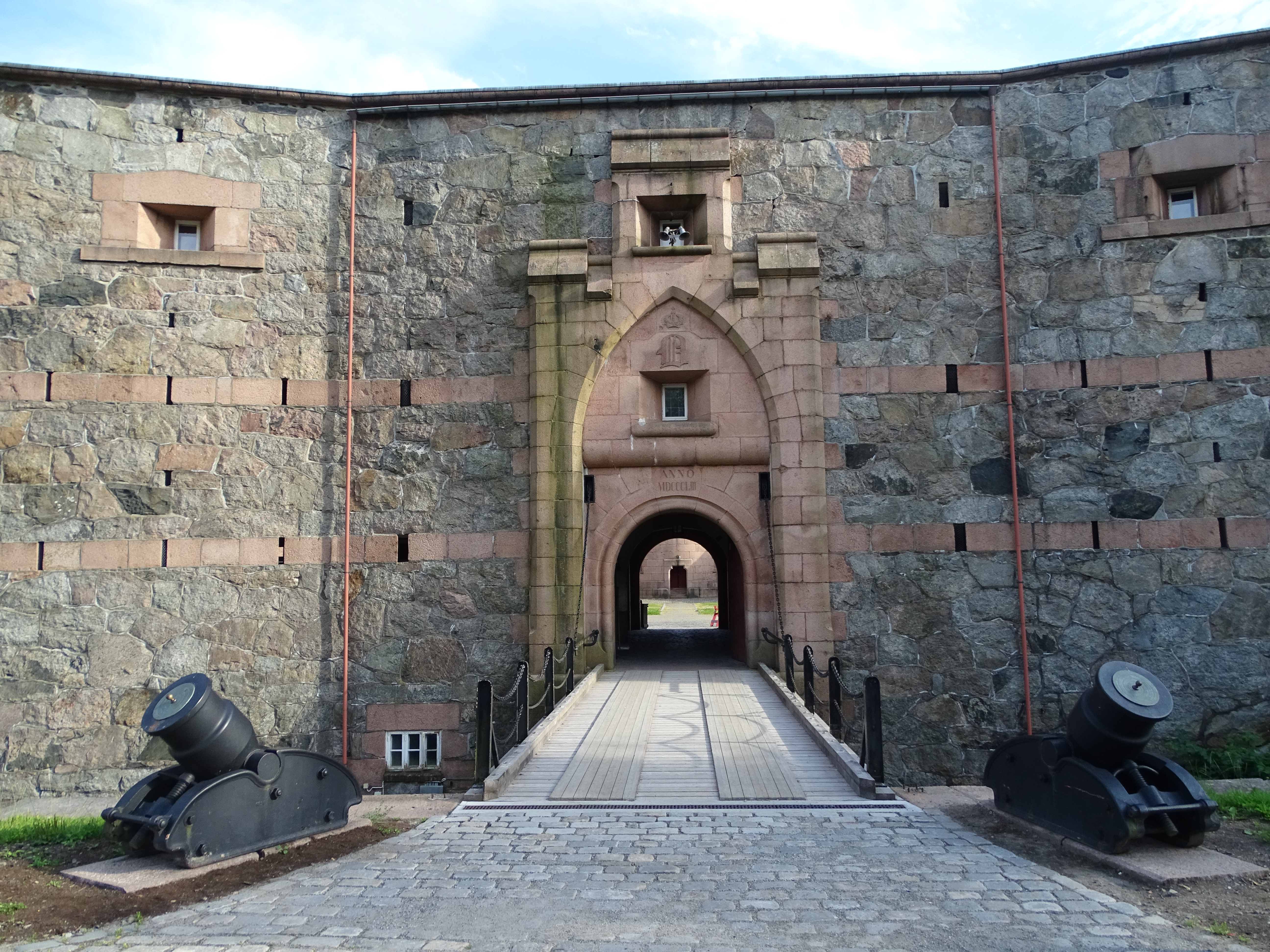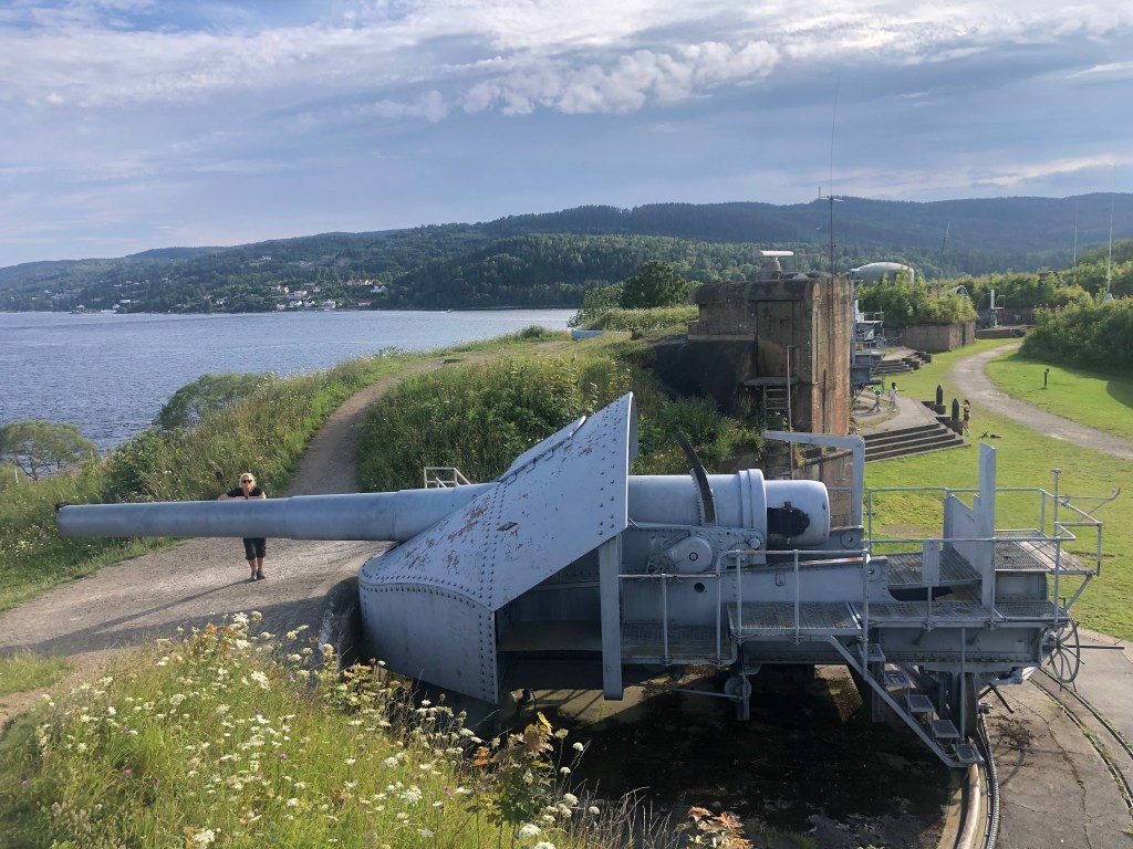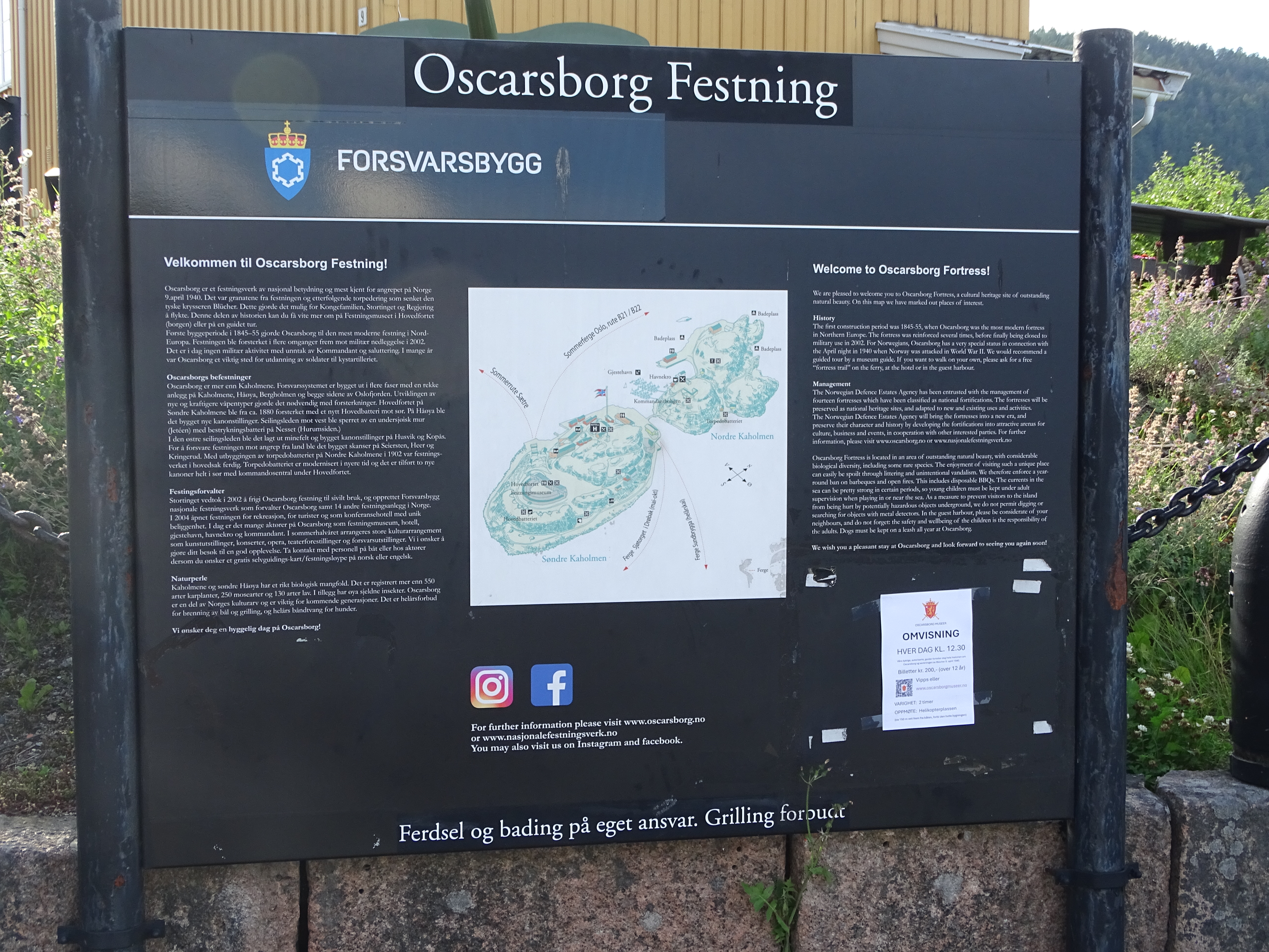 Nachdem wir in OSLO mit 60° Nord den nördlichsten Punkt unserer diesjährigen Reise erreicht haben zeigt unsere Kompassnadel jetzt wieder in Richtung Süden. 16 Seemeilen südlich von OSLO liegt die Insel OSCARSBØRG. Diesen geschichtsträchtigen Ort hatten wir bereits auf unserer Reise nach OSLO passiert und beschrieben. Jetzt wollen wir uns näher damit beschäftigen, das Museum besuchen und an einer Führung teilnehmen. Der Yachthafen liegt gut geschützt auf der Westseite der Insel und wir finden einen freien Liegeplatz an dem wir längsseits festmachen. Wir kommen noch rechtzeitig, um an der einzigen Führung des Tages teilzunehmen. Eigentlich finden keine Führungen in englischer Sprache statt. Wir haben aber Glück, dass noch mehrere englischsprachige Besucher diese Tour gebucht haben und dadurch kurzerhand ein zweiter Tourguide eingesetzt wurde. Die Führung ist sehr empfehlenswert und vom Tourguide ausgezeichnet gemacht. Ohne Wertungen abzugeben hat er viele interessante Details bekannt gegeben und uns einen tiefen Einblick in die Geschichte dieses Ortes gegeben. Aus rein militärischer Sicht ist es nicht nachvollziehbar warum Admiral Kummetz, trotz aller Bedenken des Kommandanten der Blücher, so fahrlässig vorgegangen ist und damit dieses Desaster zu verantworten hatte. Der Militärhistoriker Sönke Neitzel schrieb dazu: „…. Überoptimistisch glaubte Admiral Kummerz nicht daran, dass die Festung Oscarsborg Widerstand leisten würde. Nach Entdeckung seiner Schiffe am Eingang des Fjords und dem Löschen aller Leuchtfeuer war dies eine allzu kühne Erwartung. …“ und: „...Immerhin überlebte er seinen Fehler, mit der Blücher voran langsam durch die Drobag-Enge zu dampfen. Schwimmend erreichte er das Ufer und erhielt später für die missglückte Operation sogar noch einen hohen Orden. …„