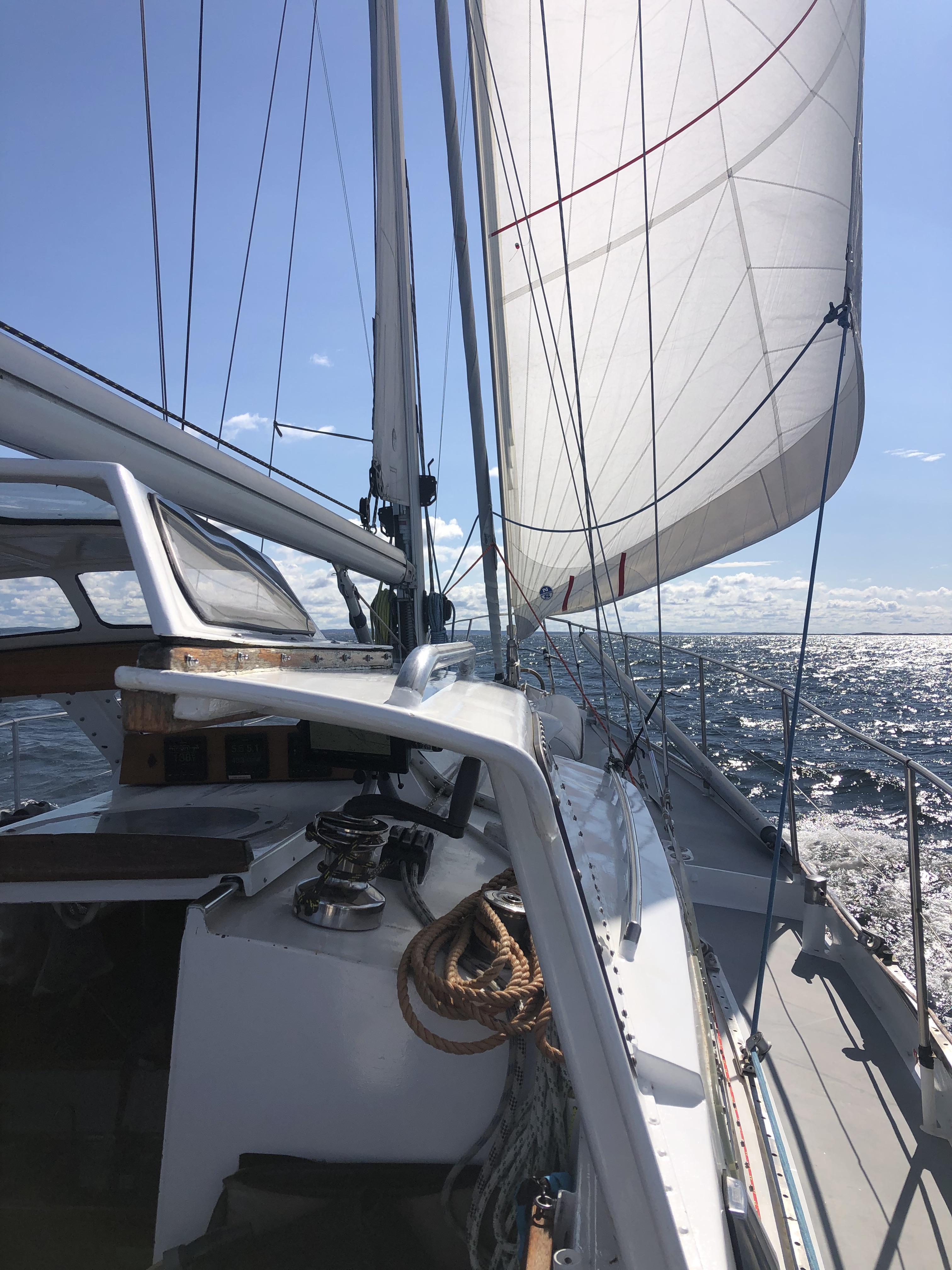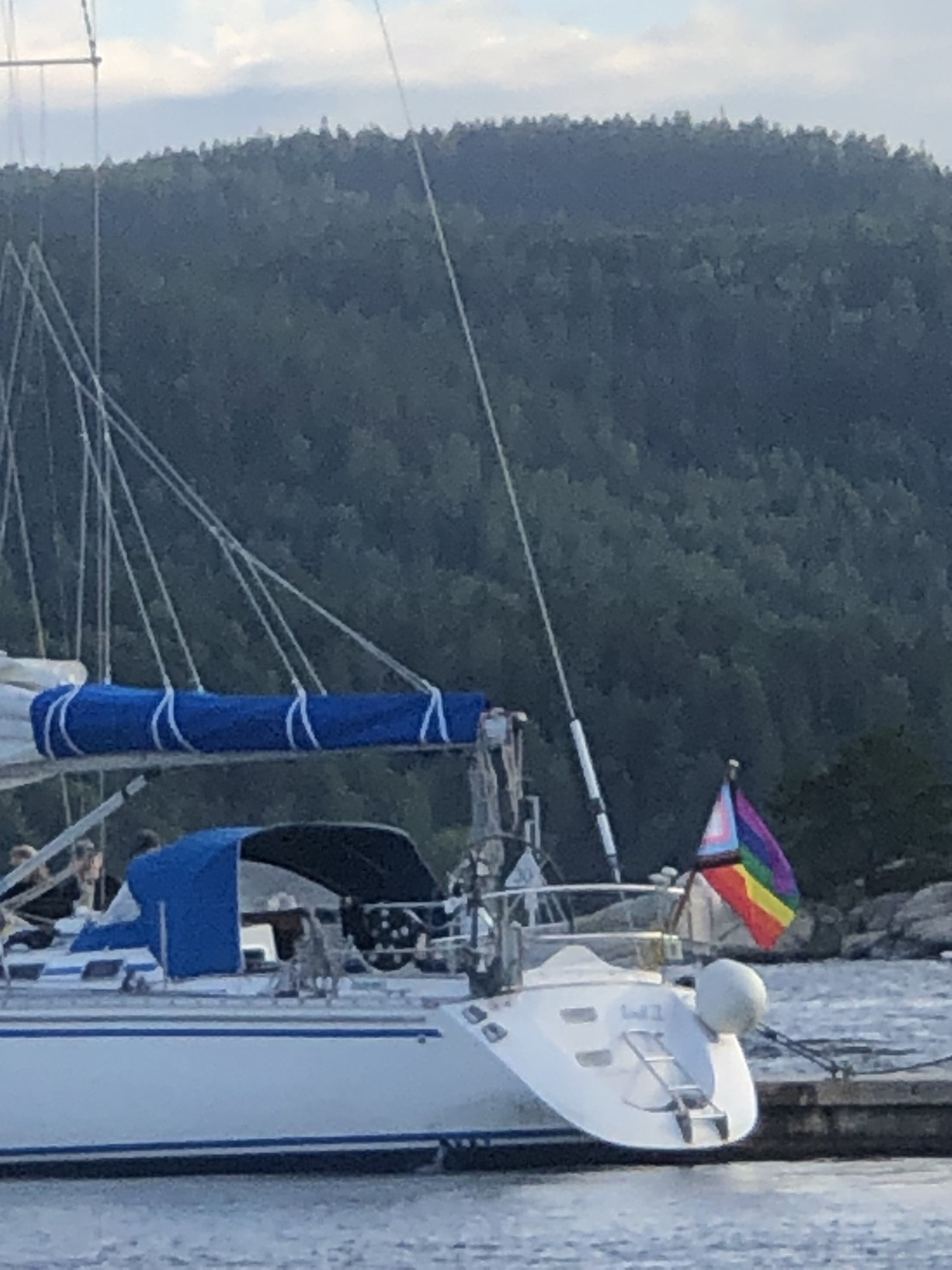 Dieser Hafen sollte die Basis für zwei Wochen Boat Office werden in denen Simone Urlaubsvertretung übernehmen muss. Wir sind unserem Zeitplan noch etwa 14 Tage voraus und zu früh wollen wir uns nicht in die zur Urlaubszeit überfüllten Westschwedischen Schären begeben. Fredrikstad wurde uns zudem als kulturreiche Stadt mit vielen Sehenswürdigkeiten empfohlen. Das Wetter passte perfekt für die vor uns liegenden 40 Seemeilen. Bei bis zu 5 Windstärken aus nördlicher Richtung segelte Germane gemütlich unter dem Vorsegel dahin. Auf der gesamten Strecke benötigten wir den Motor nur zum Ab- und Anlegen, so soll es eigentlich sein. Die Reise entlang des Oslo Fjords ist eher unspektakulär. Obwohl in der Seekarte ein Verkehrstrenngebiet eingezeichnet ist, scheint dies niemanden zu interessieren. Eigentlich sind diese Trenngebiete, nur wenn unbedingt nötig, im rechten Winkel zu queren. Sportboote müssen sich innerhalb des VTG am Rand des für die jeweilige Richtung vorgeschriebenen Fahrwassers halten. Hier ist es augenscheinlich gängige Praxis gegen diese Regeln zu verstoßen. Indem wir weiter den optimalen Winkel zum Wind segeln, passen wir uns an. Ein solches Fehlverhalten würde auf der Elbe mit einer empfindlichen Strafe gewürdigt werden, wobei das Verkehrsaufkommen dort auch höher ist. Als wir nach acht Stunden in Fredrikstad einlaufen sind wir enttäuscht. Der Gästehafen ist teuer und die Hafeninfrastruktur einfach. Die einzig geschützten Plätze sind reserviert, wie sich aber erst herausstellt nachdem wir festgemacht haben und uns durch das komplizierte Online-Buchungssystem gefummelt haben. Direkt angrenzend ist eine Wohnmobil-Stellfläche, auf der sich Sanitär Container befinden. Diese teilen sich Bootsfahrer und Wohnmobilisten. Eigentlich sollte das kein Problem sein, wenn diese „Womo-Spezie“ nicht eine komplett andere Blutgruppe als die der Seefahrer hätte (eine ausführliche Begründung dazu folgt irgendwann später). Wir müssen uns in den ungeschützteren Teil des Hafens verholen und sind dort dem Schwell der vorbeifahrenden Boote ausgesetzt. Einziger Vorteil des Hafens ist seine zentrale Lage (im heruntergekommenen Gewerbegebiet) zur Innenstadt, mit vielen Restaurants und Kneipen. Da wir nicht auf Kneipentour sind ist die Freude über den zentralen Liegeplatz begrenzt und die Planung für die Weiterfahrt schnell gemacht. Der Besuch der etwa vier Kilometer entfernten Altstadt hat uns zumindest die Allgegenwärtigkeit der in dieser Region weit verbreitenden „Pride- Ideologie“ gezeigt.