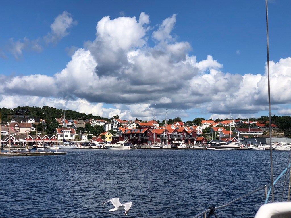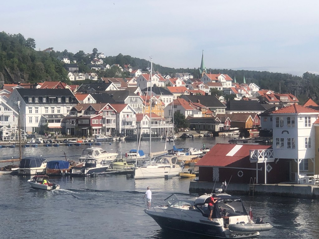 Nach 19 Seemeilen unter Segeln machen wir in diesem beliebten Urlaubsort fest. Der Liegeplatz war im voraus buchbar, was auch nötig war wie sich beim Einlaufen zeigte. Ort und Hafen liegen gut geschützt hinter mehreren kleinen Inseln inmitten des Ytre Hvaler Nasjonalpark in unmittelbarer Nähe zur Schwedischen Grenze. Der kleine Ort versprüht mit seinen kleinen Holzhäusern, Geschäften und Restaurants in unmittelbarer Wassernähe den typisch norwegischen Charme. Dies wird unser letzter Hafen in Norwegen sein. Nach drei Monaten Aufenthalt müssen wir das Land verlassen weil Norwegen nicht Mitglied in der EU ist. Am 11. August wären diese drei Monate rum, kontrollieren würde uns vermutlich niemand. Wir wollen jedoch gegen keine Regeln verstoßen und freuen uns über das Privileg frei und sicher in diesem schönen Land reisen zu dürfen. Ein weiterer Vorteil Norwegens sind die Dieselpreise. Diesel an Bootstankstellen ist hier, entgegen dem an Autotankstellen, „Afgiftsfri„, also steuerfrei. In Verbindung mit der schwachen Norwegischen Krone tanken wir für umgerechnet 1,29€/ Liter und damit günstiger als auf Helgoland. Mit 700 Litern Diesel an Bord sollten wir es selbst bei Flaute bis zum nächsten Tankstopp auf Helgoland schaffen. Hier stehen die nächsten Tage Boat-Office, Dinghy fahren, Schwimmen und Laufen auf dem Plan. Die erste Laufrunde über 15km führte durch eine tolle Landschaft. Je weiter wir wieder nach Süden kommen, so moderater werden auch die Anstiege auf den Strecken. Bislang hat es noch geklappt an jedem besuchten Ort unserer Reise ein kleines Läufchen zu machen. Das Laufen ist ein schöner Ausgleich zum sonst eher bewegungsarmen Bordleben.