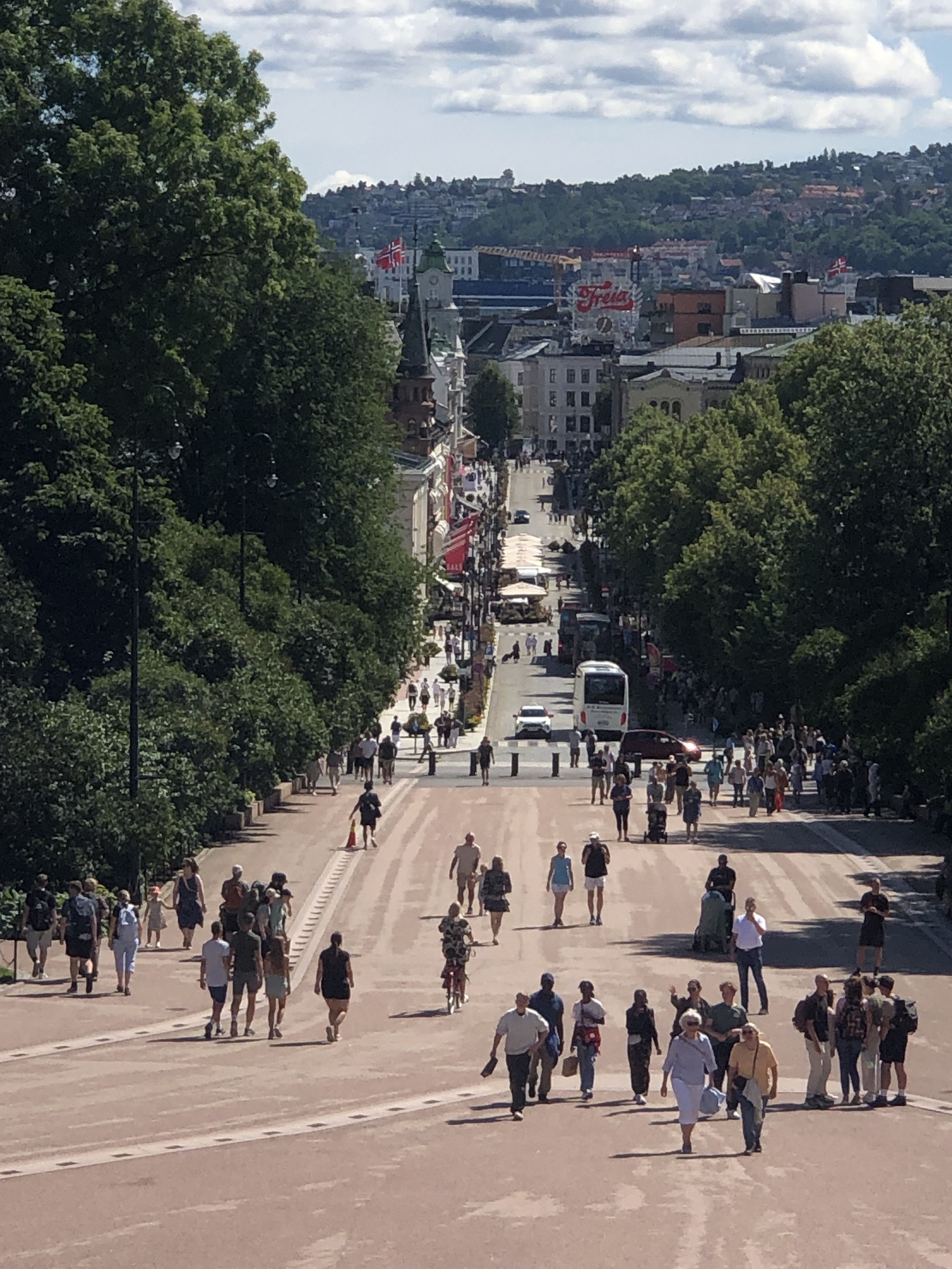 Oslo ist eine schöne, saubere und moderne Stadt mit vielen Museen. Sie unterscheidet sich dennoch vom restlichen Norwegen so wie wir es kennen. Das hier der Großteil der Bewohner wohlhabend ist wird nicht nur durch teure Autos und hochwertige Yachten im Hafen sichtbar. Die Restaurants sind gut besucht, die Preise hoch und das Straßenbild eher „Schicky-Micky“. Hier fällt uns auf, dass deutlich weniger Fahnen mit den norwegischen Nationalfarben zu sehen sind. In den anderen Teilen Norwegens wehen diese an vielen Privathäusern und Geschäften, hier nur an den öffentlichen Gebäuden. Die sogenannte „Pride-Flag“ in Regenbogenfarben ist dafür aber allgegenwärtig. Der Yachthafen wird Nachts von einem Sicherheitsdienst bestreift und hier und da sind einige finstere Gestalten zu sehen. Um so mehr freuen wir uns über Besuch von Kay-Uwe, der vor vielen Jahren nach Norwegen ausgewandert ist. Von ihm erfahren wir viel über Land, Leute und Kultur. Diese Veteranentreffen sind immer wieder schön und zeigen selbst nach vielen Jahren ohne Kontakt die enge Verbundenheit durch die gemeinsamen Erlebnisse und gemachten Erfahrungen.