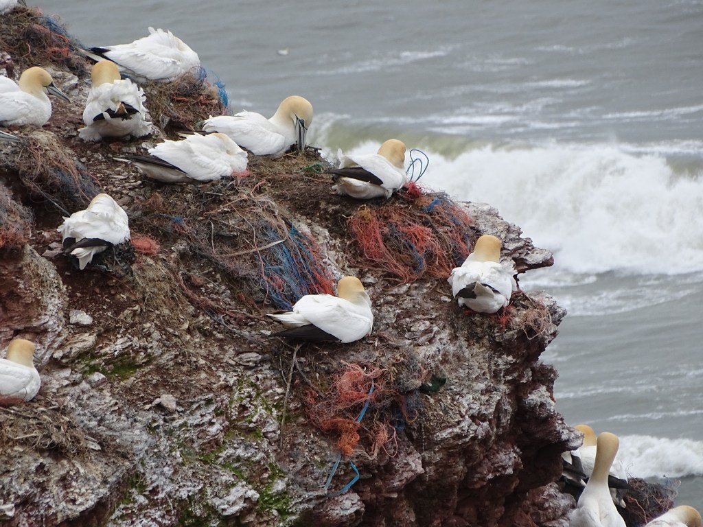03.-13.04.2022 Helgoland, Oberland/ Dühne. Es gibt schlechtere Orte um abzuwettern. Nachdem wir 530 Liter Marinediesel ohne Bioanteile für 1,63€/L getankt haben, ging es auf das Oberland zu den Basstölpeln. Erschreckend, wie sehr die Verschmutzung der Meere Einfluss auf die Natur hat.