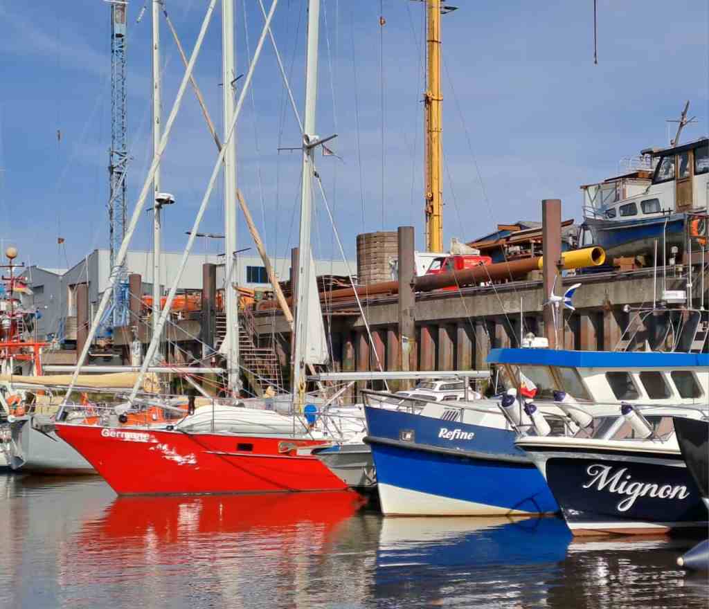 Unser neuer Winterliegeplatz bei der DETZKEIT-Werft im Schleusenpriel war ein Glücksgriff! Eine kleine Werft, in der hauptsächlich Fischkutter und kleinere Berufsschiffe repariert werden. Hier wird von geraden Typen Bootsbaukunst in allen Facetten betrieben und gelebt. Die Gemeinschaft der Dauer- und Winterlieger ist ähnlich individuell. Hier liegen Fischer, Werftarbeiter, Kapitäne, Lehrer, Angestellte, Studenten und ein Pensionär mit ihren Booten. Eine tolle Gemeinschaft in der das gesprochene Wort noch etwas gilt und sich gegenseitig geholfen wird.