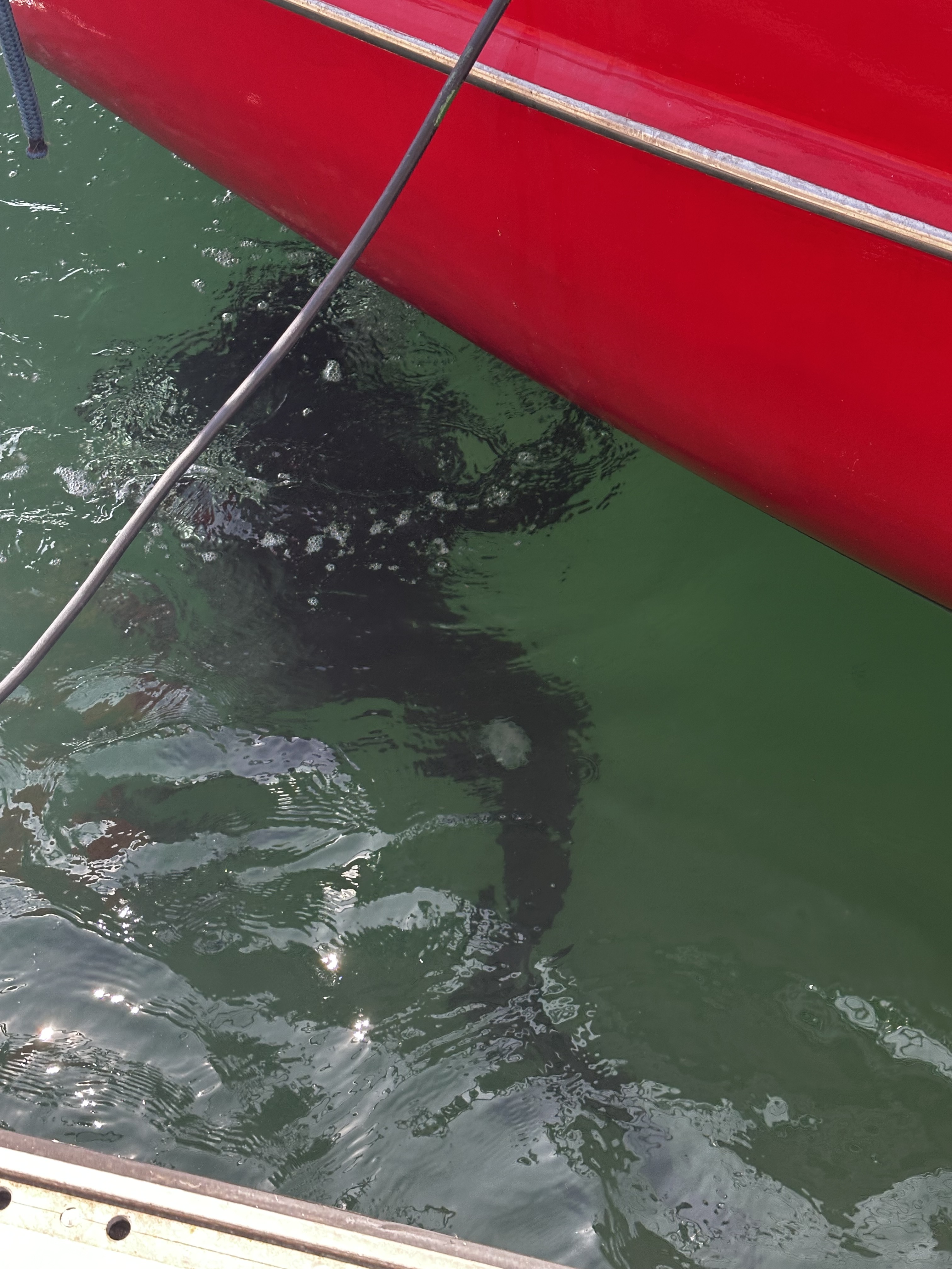 Wie zuvor bereits beschrieben ist uns die Zeit für Reisevorbereitungen davon gelaufen. Germane kommt eigentlich alle zwei, spätestens alle drei Jahre aus dem Wasser, um das Unterwasserschiff zu säubern, mit neuem Antifouling zu streichen und ggfs. die Anoden zu wechseln. In der Zeit dazwischen tauchen wir regelmäßig das Schiff ab, um Bewuchs in Form von Algen, Schleim und Seepocken zu entfernen. Dies haben wir vor unserer Abreise nicht mehr geschafft, was sich auch direkt bemerkbar machte. Germane kam nicht wie gewohnt in Schwung, unter Maschine fehlte ein Knoten Geschwindigkeit. Auf der Reise nach Helgoland halb so wild, denn der Ebbstrom auf der Elbe schiebt anfangs mit 3,5 Knoten mit. Fällt dieser weg oder schiebt gegen an wird’s langsam. Nachdem sich der Helgoländer Hafen geleert hat, wir lagen mit bis zu sechs Booten im Päckchen nebeneinander, kramen wir die Tauchausrüstung hervor. Es schon eine Menge Gerödel was man mitschleppt, darauf verzichten wollen wir aber nicht. Zu oft hat sie sich schon bewährt. Zum Entfernen einer Leine im Propeller, Kontrolle nach Grundberührung oder zur Hilfe bei Freunden hat sie mehrfach gute Dienste geleistet. Unter Wasser zeigt sich starker Bewuchs mit Seepocken am Propeller. Das erklärt den fehlenden Schub unter Maschine. Die Propelleranode hat sich aufgeopfert und muss gewechselt werden. Der Bewuchs des Unterwasserschiffs begrenzt sich auf Algenschleim und kann einfach mit einem Schwamm abgerieben werden. Nach einer Stunde ist alles erledigt und Germane unter Wasser wieder hübsch. Ohne Tauchgerät hätte das Kranen oder Slippen mehrere hundert Euro gekostet, um Germane aus dem Wasser zu holen. Das gesparte Geld investieren wir jetzt in steuerfreien Marinediesel, den man auf Helgoland ganz legal bunkern darf. Auf der Fahrt zur Tankstelle läuft Germane wieder in alter Form durchs Wasser. Wir bezahlen für 345 Liter Diesel 386,-€, was einem Literpreis von 1,12€/l entspricht. Bei diesen Preisen macht tanken schon fast Spaß. Lieber Herr Lühmann, Sie müssen beim nächsten Tanken an der LKW Säule tapfer sein 🙂