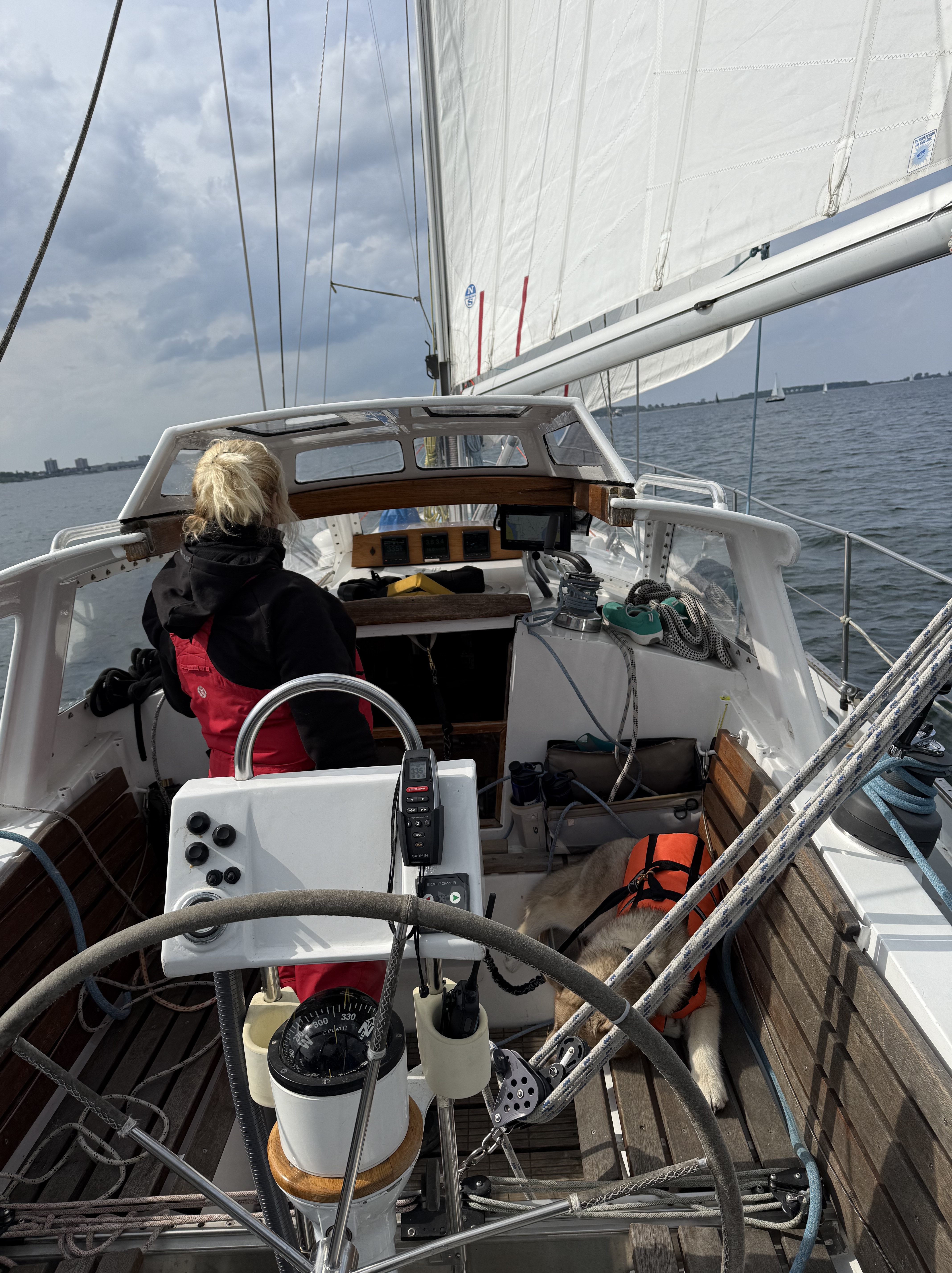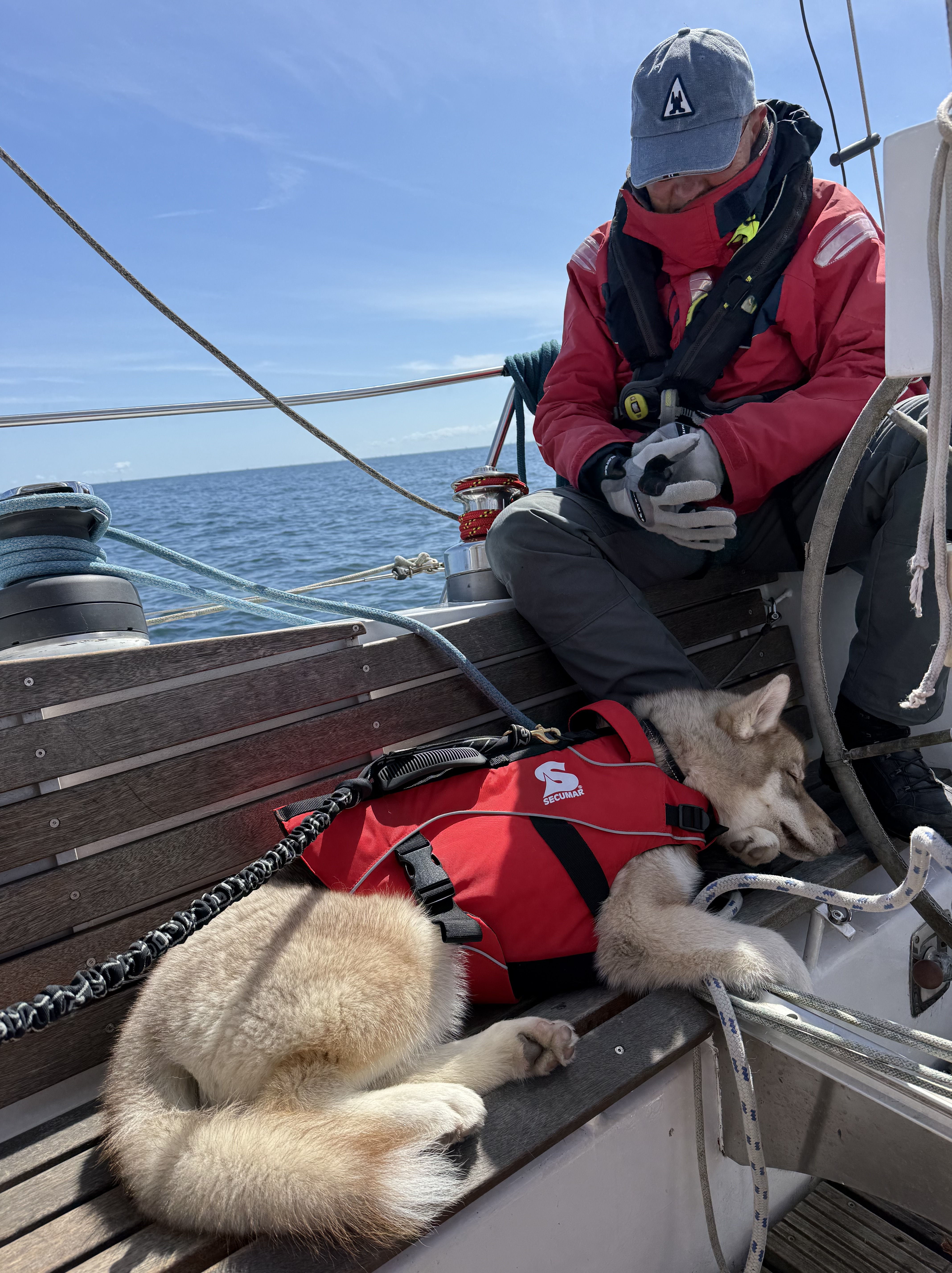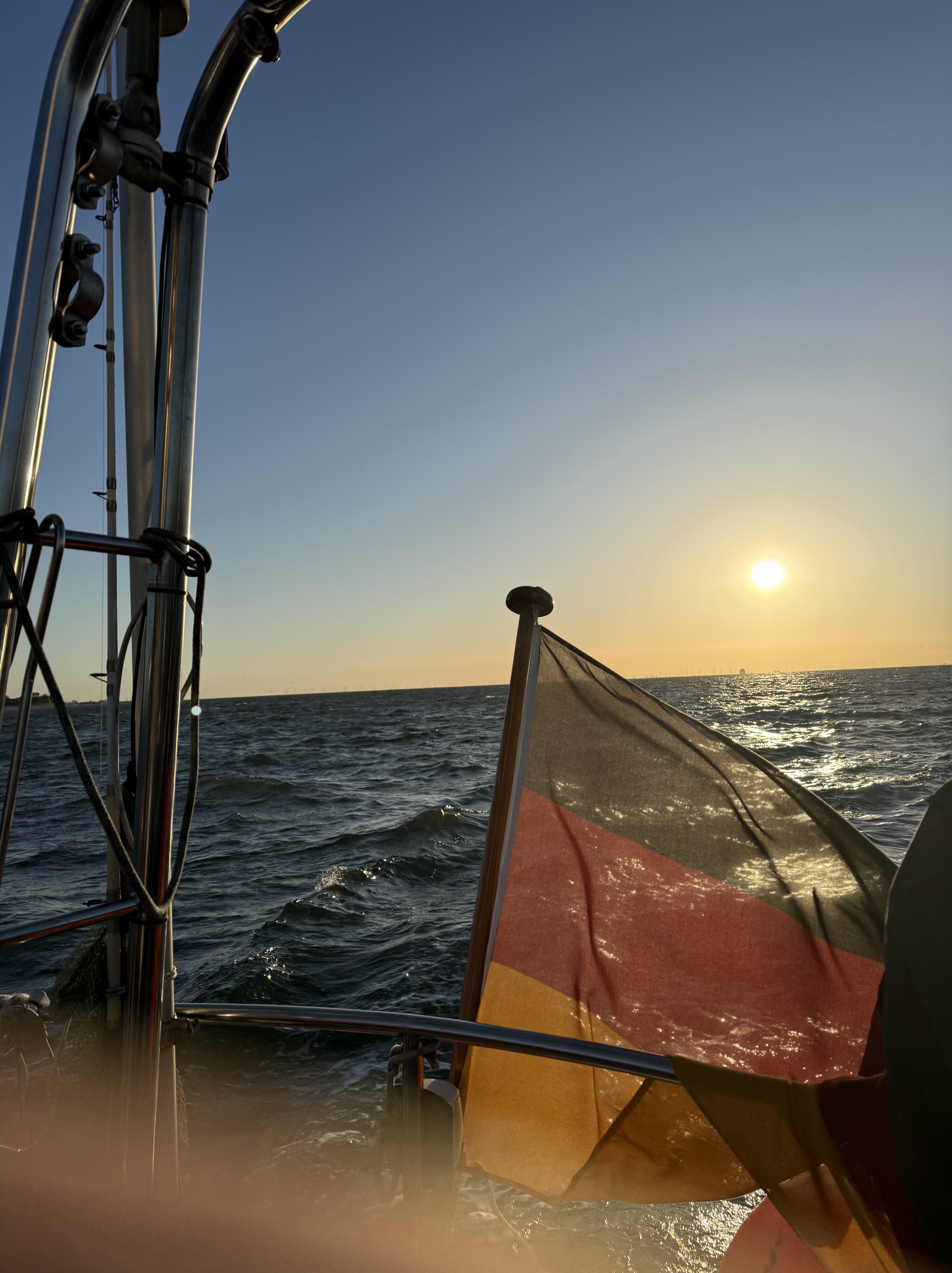 Endlich ist es wieder soweit, der Tag der Abreise zur Sommerreise 2025 ist gekommen. Um 14 Uhr laufen wir mit ablaufendem Wasser in CUXHAVEN aus und setzen unseren Kurs auf HELGOLAND. Bordhund Hans scheint noch nicht ganz überzeugt von dem zu sein was gerade passiert. Gestern hatte er noch seinen letzten Check beim Tierarzt, ist jetzt vollständig geimpft und entwurmt. Zuhause ist er stubenrein, jetzt gilt es bislang erlerntes an Bord zu übertragen. Das Wetter meint es gut mit uns, der Wind weht in Stärke 4 aus Nordost und die See ist verhältnismäßig ruhig. Eigentlich perfekte Bedingungen, um nach Helgoland zu segeln. Im Elbefahrwasser kommen uns einige große Containerschiffe entgegen, deren Wellenschlag uns ordentlich in Bewegung bringt. Hans steckt das ganz cool weg, obwohl es ihn schon zu wundern scheint, was hier gerade passiert. Bei der Tonne 9 verlassen wir das Fahrwasser der Aussenelbe und setzten zum Vorsegel auch das Grosssegel. Germane legt sich auf die Seite und zieht seine Bahn unter Segeln. Hans wird unter Deck doch etwas unruhig und möchte gerne schauen was draußen los ist. Er ist ein wenig irritiert, als er um das Boot herum nur noch Wasser sieht. Vermutlich hatte er gehofft das Boot einfach über den Steg verlassen zu können, nun muss er sich mit der neuen Situation arrangieren. Als wir nach fünf Stunden in den Helgoländer Vorhafen einlaufen, sind alle Liegeplätze am Steg belegt. Wir machen längsseits an einer deutlichen größeren Segelyacht fest, die unter britischer Flagge segelt. Hans ist jedenfalls froh, als er wieder festen Boden unter den Pfoten hat. Wir machen einen langen Spaziergang übers Oberland der Insel und freuen uns über das Privileg wieder unterwegs sein zu können. Dieses Jahr haben wir uns keine festen Ziele gesetzt. Wir werden einfach in kurzen Schlägen durch die deutsche Bucht segeln und später noch in die Ostsee fahren. Im Schwerpunkt wollen wir aber Hans ans Segeln und Bordleben gewöhnen. Hier bleiben wir jetzt erstmal, am nächsten Wochenende steht der Helgoland Marathon an.