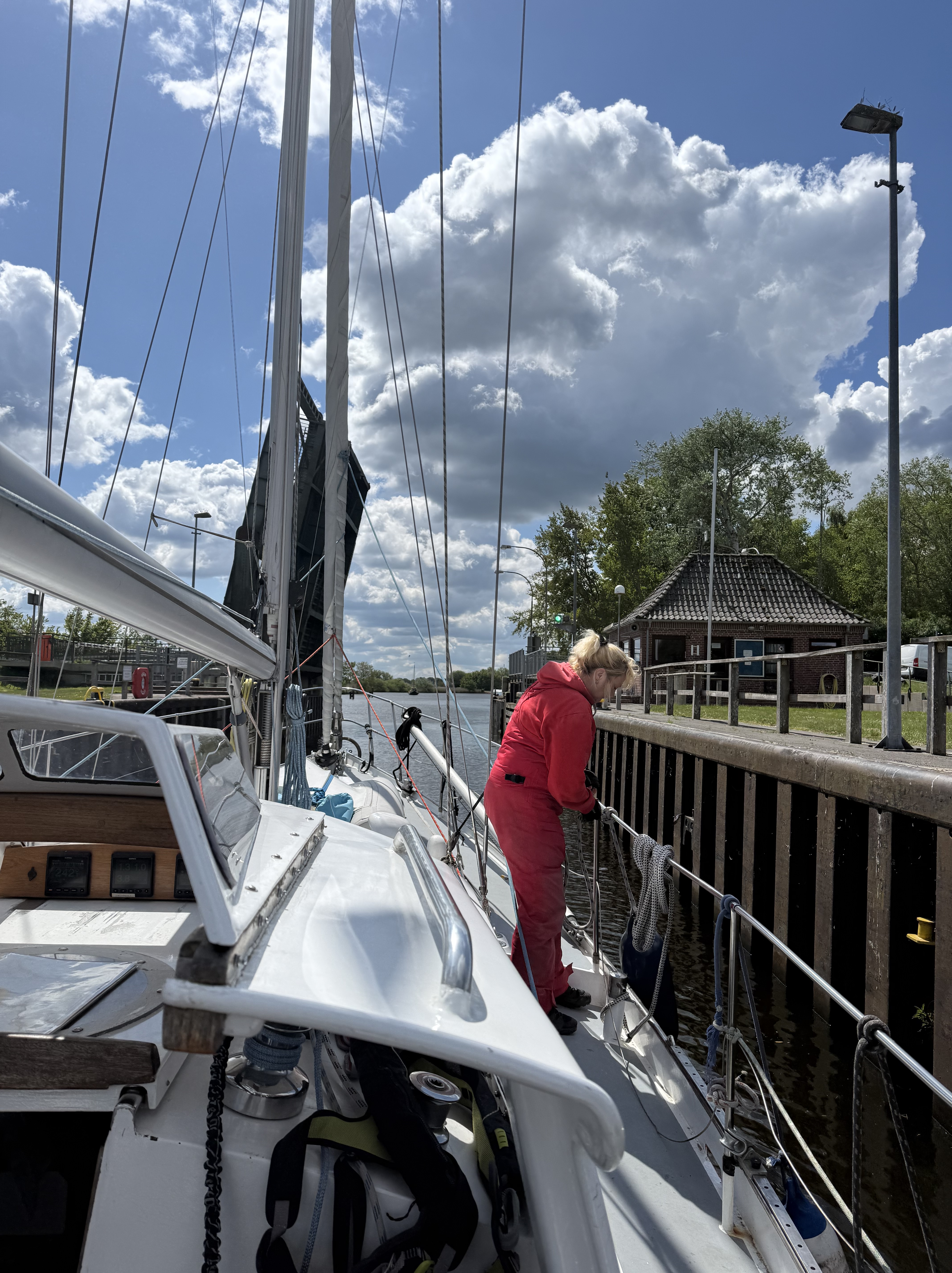 Der letzte Abend an der Feuerschale wirkte noch etwas nach und wir kamen erst gegen Mittag los. Es sollte ohnehin nur bis Gieselau-Schleuse gehen, welche die Eider mit dem Nord- Ostseekanal verbindet. Dieser idyllische Ort liegt günstig, um den Kanal in zwei Etappen zu durchfahren. Auch hier zeigte sich einmal wieder, wie schön klein unsere norddeutsche Welt ist. Im Vorbeifahren erkannte Tauchbuddy Andy Peters unser knallrotes Segelboot und kam mit seiner Frau zum kurzen Klönschnack an Bord. Als wir nach der Schleusung auf der NOK Seite ankamen hatten wir noch die freie Wahl des Liegeplatzes. Kurze Zeit später füllte sich der Bereich schnell mit anderen Yachten, die hier ebenfalls die Nacht verbringen wollten. Ein weiterer Grund für diesen Zwischenstopp war die schlechte Abdeckung des Mobilfunknetzes. Simone ist auf eine stabile Internetverbindung angewiesen, um ihrer Arbeit im Boat Office nachgehen zu können. Unsere diesjährige Reise soll in kurzen Schlägen entlang der deutschen Küste gehen und aus Erfahrung wissen wir, dass die Netzabdeckung dort nicht besonders gut ist. Zur Problemlösung haben wir uns Starlink angeschafft. Dieses System funktioniert mit hoher Geschwindigkeit nahezu weltweit, viele Langfahrtsegler schwören darauf. Auch wir werden nicht enttäuscht als wir es inmitten norddeutscher Abgelegenheit in Betrieb nehmen. Die Downloadgeschwindigkeit von 180 mbits/s ist deutlich schneller als zuhause in Cuxhaven. Am nächsten Morgen geht’s bei Sonnenschein weiter bis zur Schleuse in Kiel-Holtenau. Nahezu unverzögert können wir gemeinsam mit ein paar bereits wartenden Yachten in die Schleuse einfahren. Es ist immer wieder erstaunlich welches Verhalten die Freigabe bei manch einem Skipper auslöst. Als sei dieses Lichtzeichen ein Startsignal, beginnt ein Beschleunigungsrennen der Sportboote. Jeder will sich den besten Platz in der Schleusenkammer sichern, selbst innerhalb der Schleuse wird noch überholt. Auf die Profis der Berufsschifffahrt müssen diese Bilder befremdlich wirken. Rundum mit Fendern behangene Segelboote fahren deutlich zu schnell in die Schleuse ein. Dickbäuchige Herren gesetzteren Alters haben am Steuer das Gesicht zur Faust geballt, während Mutti sich mit Leine in der Hand zum kühnen Sprung auf den Anleger vorbereitet. Wir lassen sie alle machen, denn bei solch einer Aktion haben wir schon Lehrgeld bezahlt. Auch jetzt liegen bereits zwei große Berufsschiffe in der Schleuse. Oft haben diese noch eingekuppelt und das Schraubenwasser erzeugt eine enorme Strömung in deren Heckbereich. Ein paar Tage später kommt es dadurch zu einem Unfall mit Verletzten und Mastbruch. Heute geht erstaunlicherweise alles gut, zumindest muss diese Schleusung wieder einiges an Unterhaltungswert für den Schleusenwärter gebracht haben. Nach dem Verlassen der Schleuse können wir noch ein Stück segeln und laufen pünktlich zum Anlegebier in die Baltic Bay Marina Laboe ein.