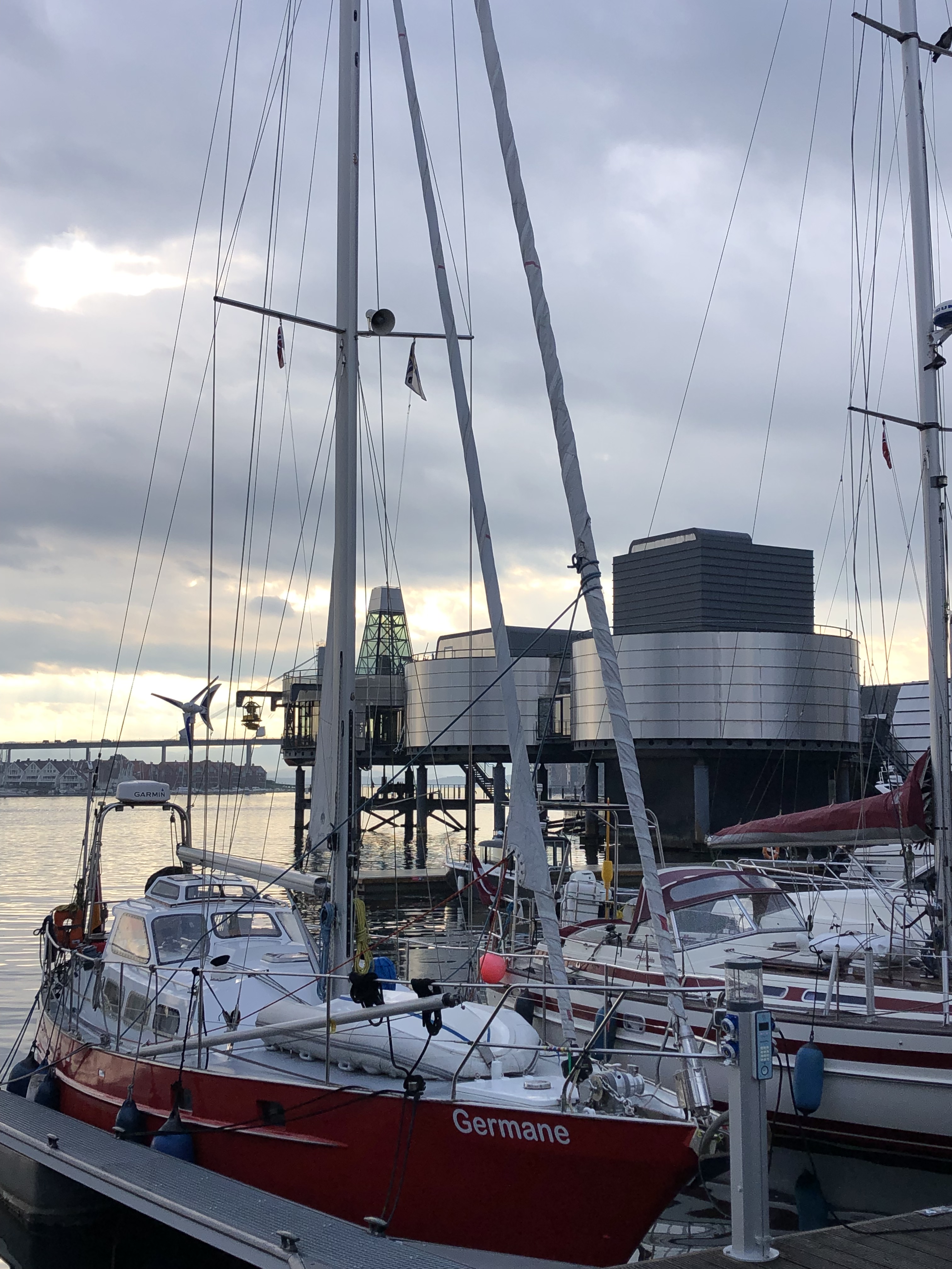 Die Wunden vom Marathon sind verheilt, steuerfreies Bier und Diesel gebunkert, weiter geht’s gen Norden. Für die vor uns liegenden 160 Seemeilen müssen wir die Nacht hindurch segeln. Das Wetter beschert uns anfangs leichten achterlichen Wind, der im Laufe der Nacht noch bis zu 6Bft auffrischt. Die Route führt uns entlang zahlreicher Windparks, die der Deutsch/ Dänischen Westküste vorgelagert sind. Diese haben mittlerweile enorme Ausdehnungen und deren Ausbau scheint noch lange nicht abgeschlossen zu sein. Sicherlich ist dies für eine erfolgreiche Energiewende notwendig, dennoch gruselig wie sich innerhalb der letzten zwei Jahre dieses Küstengewässer verändert hat. In der Nacht blinken und blitzen überall Gefahren- und Markierungsbojen, deren Positionen nicht immer eindeutig zuzuordnen sind. Auch die Bordroutine muss sich erst wieder einfinden, unseren Wachrhythmus finden wir in dieser Nacht aber nicht. Zu viele Gefahrenstellen durch Sperrgebiete, Windparks, Messbojen und Fischereifahrzeuge erfordern unsere Aufmerksamkeit. Entsprechend gerädert schippern wir durch die kalte Nacht und sind froh, als wir morgens um 09:30 Uhr in Thyborøn einlaufen. Dieser Hafen ist uns von unserer Reise 2022 noch angenehm in Erinnerung. In näherer Umgebung befinden sich einige Museen, in denen viel über die Seeschlachten vergangener Kriege zu erfahren ist. Den diesjährigen Aufenthalt nutzen wir aber nur als kurzen Zwischenstopp auf dem Weg nach Norwegen. Nach einem kleinen Trainingslauf durch die Dünen soll es am nächsten Morgen weiter über die Nordsee und das Skagerrak nach Norwegen gehen.
