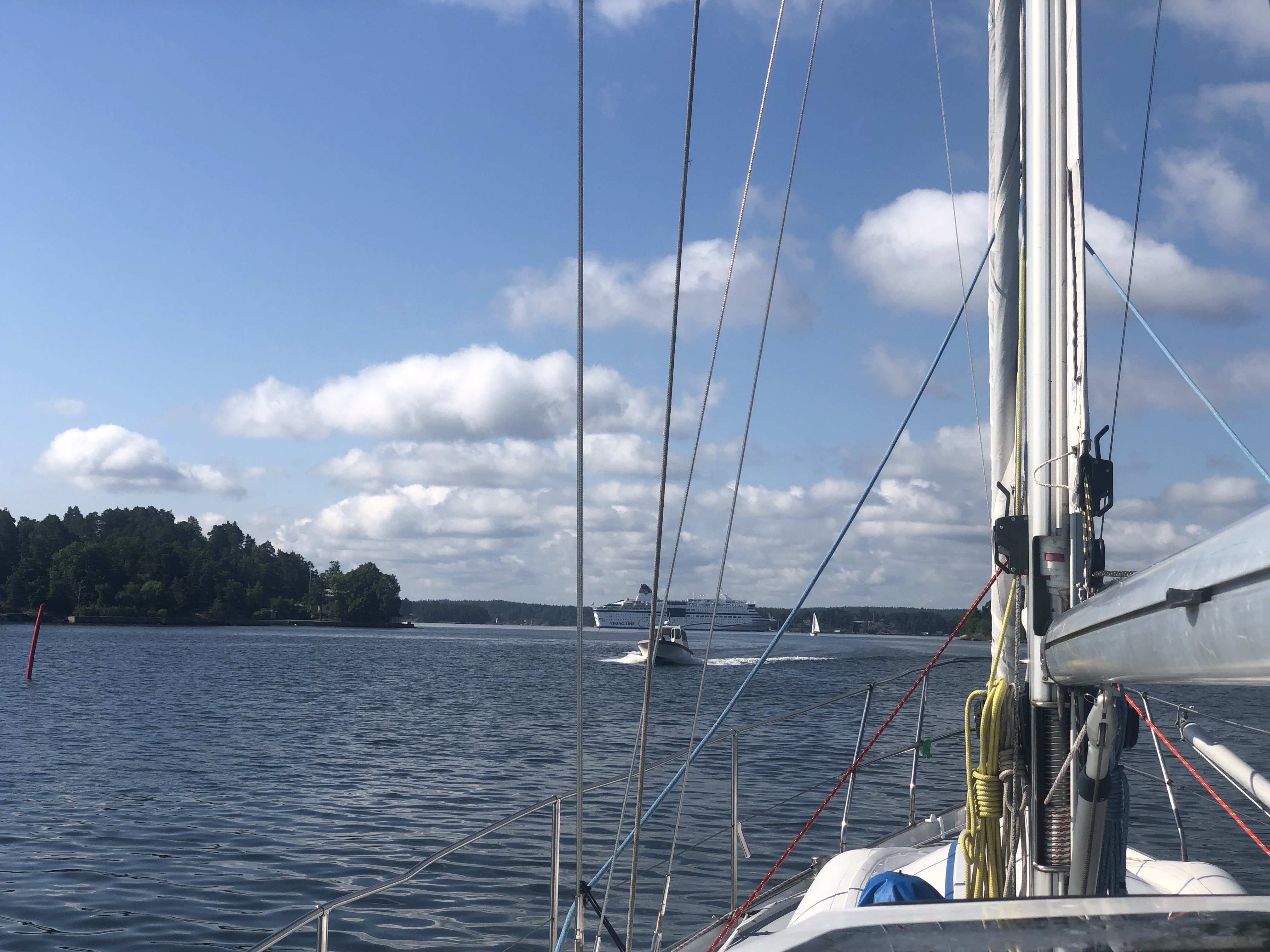 Nach drei Monaten ohne Sport haben wir auf DALARÖ unsere Turnschuhe herausgekramt und uns mal wieder auf die Laufstrecke begeben. Die Zeiten sind zwar noch nicht wieder repräsentativ, es geht aber voran. Als erstes Ergebnis müssen Dirks Laufschuhe jetzt unter der Sprayhood mitfahren 😉 Es ist herrlich, auf den kleinen Inseln laufen zu gehen. Irgend eine Strecke findet sich immer, meistens führt sie am Wasser entlang. Aufgrund der Wettervorhersage für die nächsten Tage ging es heute in das 21 Seemeilen entfernte NYNÄSHAMN. Wir wären gerne noch ein paar Tage in DALARÖ geblieben, hätten dann aber auf unserem Weg nach Süden über 20 Knoten Wind auf die Nase bekommen. Heute war zumindest teilweise Segeln „hoch am Wind“ möglich. Wir hätten auch sportlich gegen den schwachen Wind aufkreuzen können, hätten dadurch aber deutlich mehr Strecke machen müssen und entsprechend länger gebraucht. Bei diesen Bedingungen stand das Ankommen heute im Vordergrund. Diesen Hafen hatten wir vom Hinweg noch gut in Erinnerung. Neben guten Sanitäranlagen mit Sauna gibt es hier Abends Live Musik. Diesmal soll es jedoch ruhiger zugehen, das haben wir uns zumindest vorgenommen. Nach Simones Office-Day soll es am Samstag weiter gehen, um ein günstiges Wetterfenster zu nutzen.