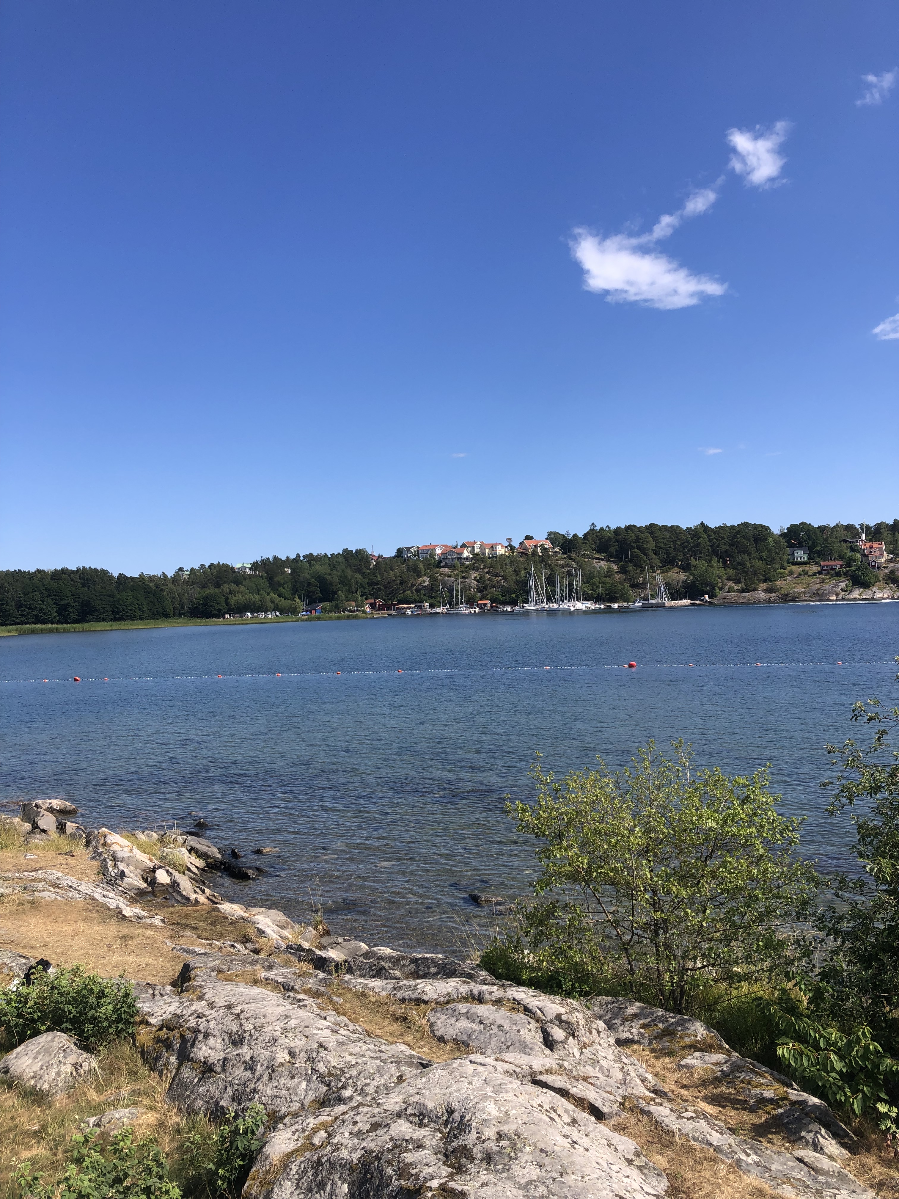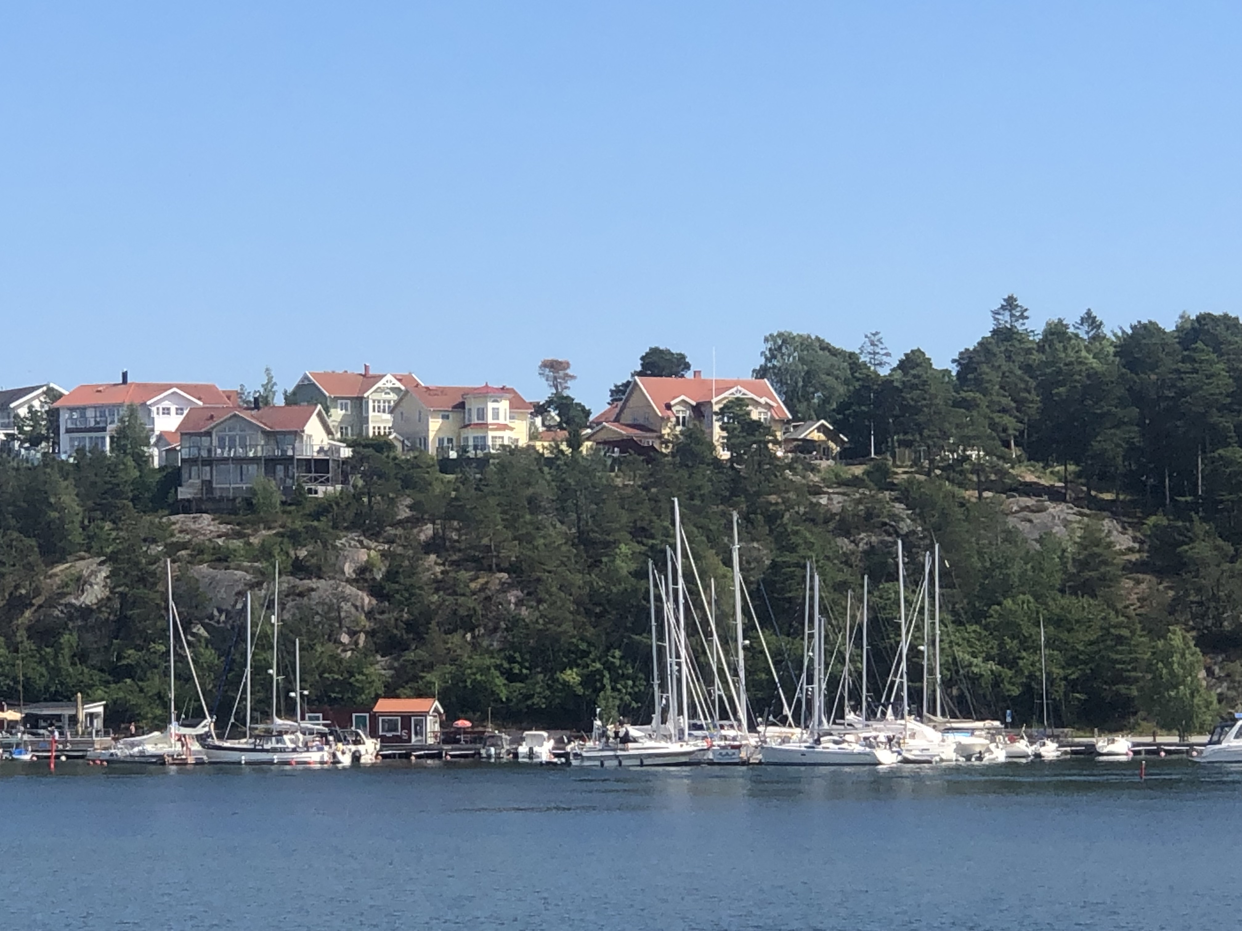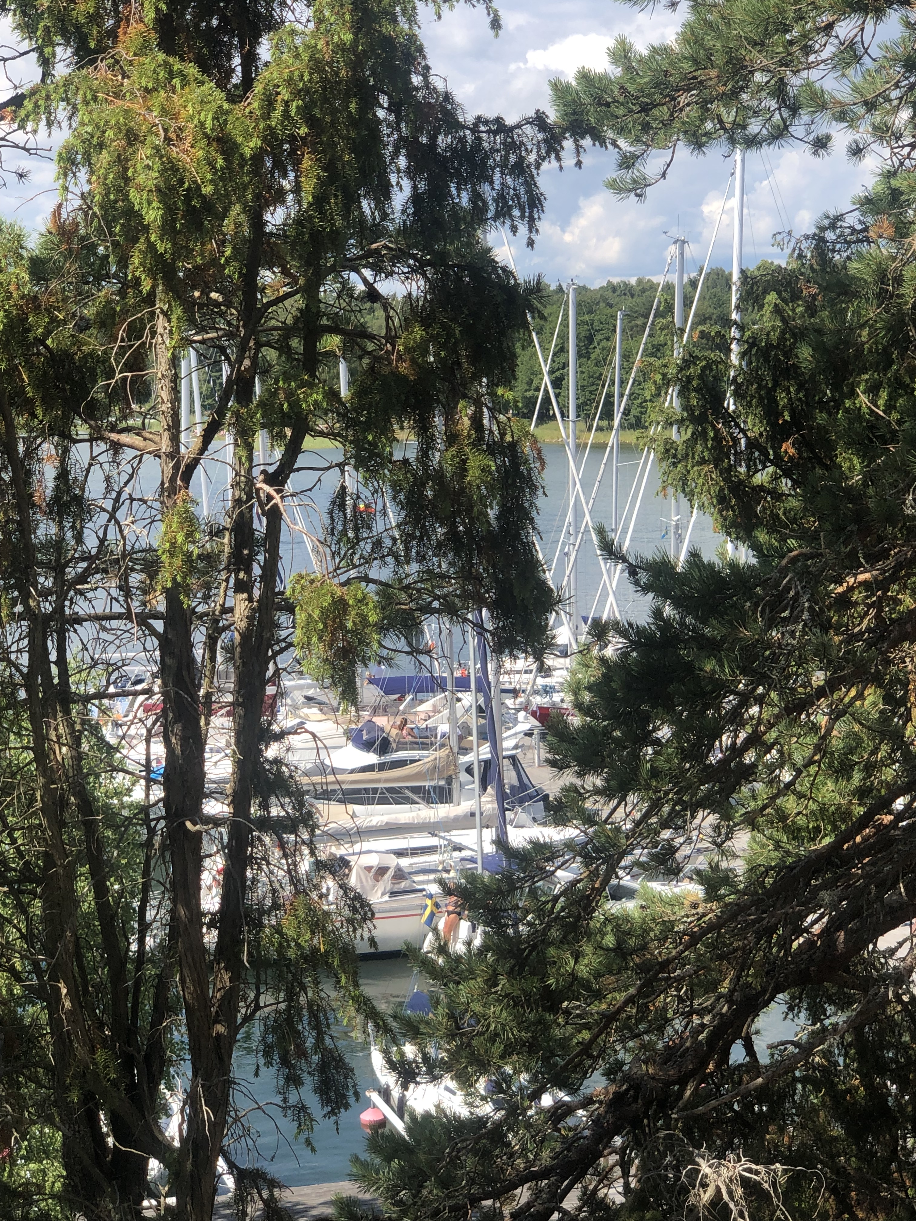 Wir befinden uns im Kern eines ausgeprägten Hochdruckgebiets. Die Isobaren liegen somit so weit auseinander, dass es keinen Wind geben kann. Dies ist gut zum Sonnenbaden und Eis essen, aber schlecht zum Segeln. In Böen messen wir 4,7Knoten Wind, daher bleiben die Segel unten und der Diesel übernimmt. Langsam aber stetig geht es aus den Stockholmer Schären heraus in Richtung Süden. Der heutige Zielhafen liegt nur 10 Seemeilen entfernt und ist gegen Mittag schon gut gefüllt. Wir werden vom Hafenmeister mit MOIN begrüßt und es stellt sich heraus, dass er vor acht Jahren hierhin ausgewandert ist. Es war sicherlich keine schlechte Entscheidung, die Zelte in Bremen abzubrechen, um Hafenmeister auf Dalarö zu werden. Zwei Stunden später sind alle Liegeplätze belegt und noch ankommende Yachten müssen abgewiesen werden. Der kleine Ort ist fußläufig zu erreichen und macht trotz der Hochsaison noch einen verträumten Eindruck. Kleine Cafés, Ateliers, Eisbuden und ein Supermarkt befinden sich entlang einer kleinen Hauptstraße. Die nächsten Tage stehen Boat Office, Schwimmen und Sport auf dem Programm.