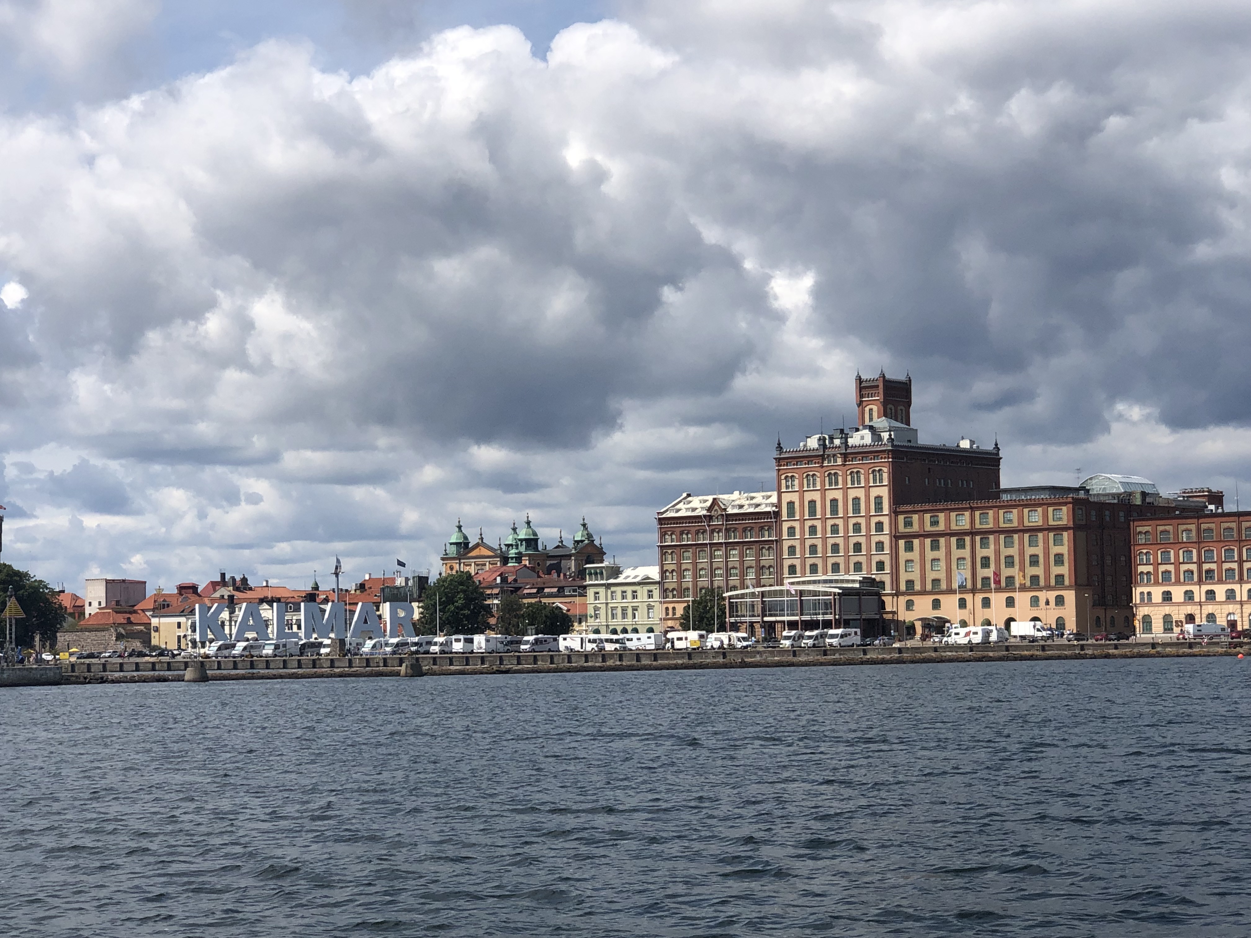 Zurück in KALMAR. Diese Woche muss das Boat Office wegen Urlaubsvertretung an fünf Tagen betrieben werden. In dieser Zeit wollen wir nicht irgendwo in der Abgeschiedenheit liegen, sondern nach getaner Arbeit auch gerne etwas Trubel um uns herum haben. Kalmar hatten wir noch vom Hinweg in guter Erinnerung und haben die 110 Seemeilen in zwei Etappen zurück gelegt. Abgesehen davon, dass wir die Zeit auf dem Wasser immer sehr genießen, waren diese Etappen bis auf eine Ausnahme eher unspektakulär. Diese Ausnahme stellte die letzten sieben Seemeilen nach FIGEHOLM dar. Das Schärengebiet endet etwas nördlich von diesem Zwischenziel. Bei der Routenplanung suchten wir uns ein enges Fahrwasser aus, um die diesjährige Schärensegelei gebührend abzuschließen. Die Planung machen wir immer anhand einer Papierseekarte und übertragen diese danach auf die elektronische Seekarte des Plotters. Dieses Verfahren hat sich bei uns über Jahre hinweg bewährt, denn bei Ausfall der Elektronik können wir jederzeit auf die vorgeplante Route auf der Papierseekarte zurückgreifen. So weit zumindest in der Theorie, in der Praxis mussten wir es auf diesem Teilstück glücklicherweise nicht anwenden. Das Fahrwasser stellte sich nicht wie erhofft als Fahrwasser entlang kleiner Inseln heraus, sondern eher als Geröllfeld inmitten einer von Untiefen durchzogenen Wasserfläche. Der kleinste Navigationsfehler hätte uns hier unmittelbar auflaufen lassen. Dieses enge und spärlich betonnte Fahrwasser stimmte zudem nicht überall mit der elektronischen Seekarte überein. An einer Stelle führte das betonnte Fahrwasser über eine auf dem Plotter dargestellte Untiefe. Natürlich haben wir uns für den betonnten Fahrwasserverlauf entschieden und dabei auch Recht behalten. Mit einer gemittelten GPS Abweichung von 7,5m war der Plotter in diesem engen Fahrwasser ohnehin nur grober Anhalt. So weit so gut, wenn ausreichend Sicht vorhanden ist, um den weiteren Fahrwasserverlauf anhand der nächsten grünen oder roten Fahrwassertonne zu erkennen. Zu unserem Übel verschlechtert sich das Wetter. Wir hatten gehofft noch vor dem aufziehenden Gewitter in FIEGEHOLM zu sein, die dunklen Gewitterwolken kommen aber schon bedrohlich nahe. Der Kompromiss in dieser Situation war nun unter Maschine mit viel zu hoher Geschwindigkeit möglichst schnell aus diesem Fahrwasser herauszukommen. Das Puls und Blutdruck in diesen Situationen deutlich ansteigen muss nicht weiter erwähnt werden. Diese Werte gingen erst wieder herunter, als wir eine Stunde später im Gästehafen von FIGEHOLM festmachten. Unser Bedarf an engen Fahrwassern ist für dieses Jahr gedeckt. Die zweite Etappe nach KALMAR führte uns über das breite tiefe Wasser des Kalmarsunds und verlief glücklicherweise völlig unspektakulär.