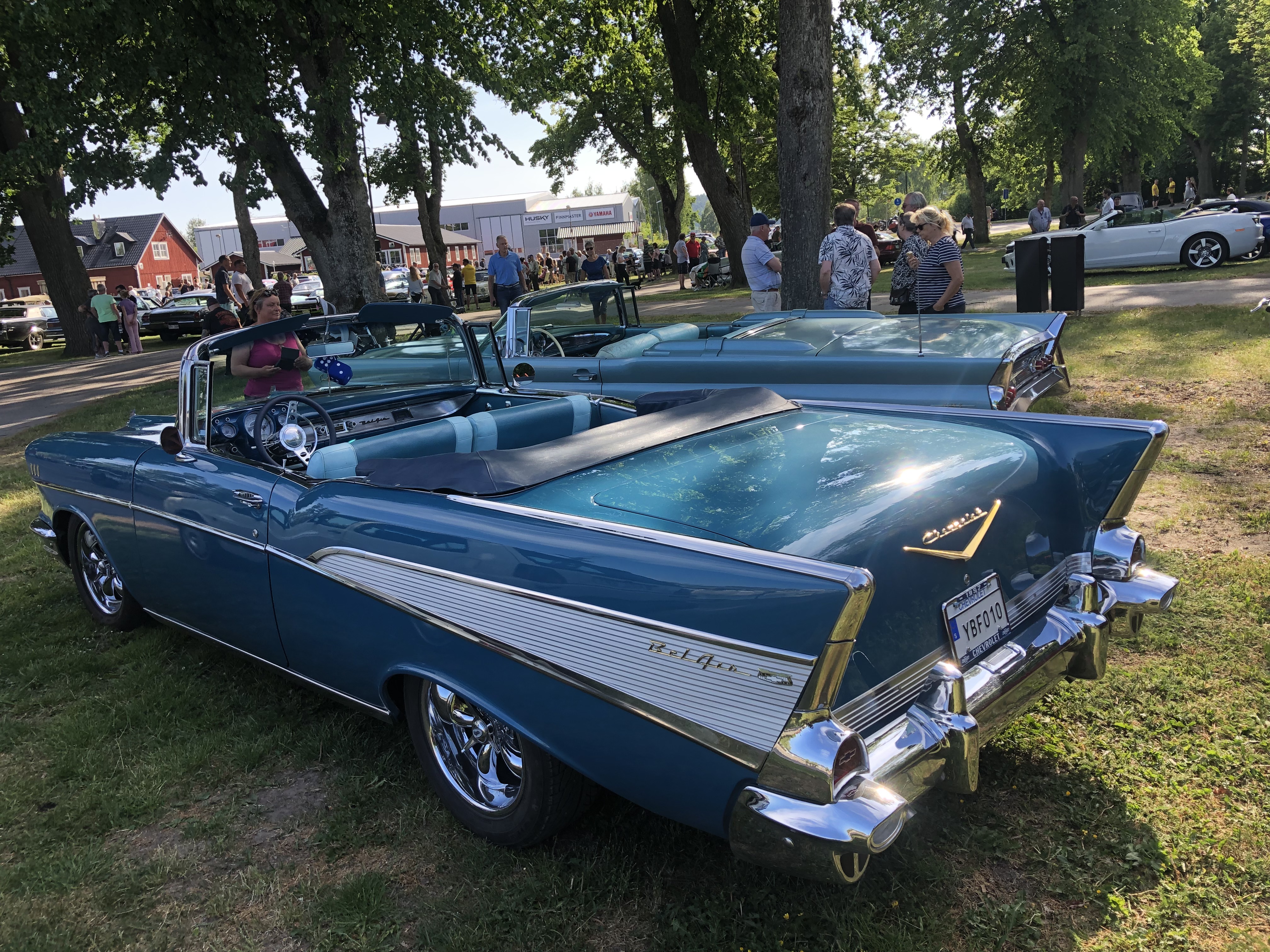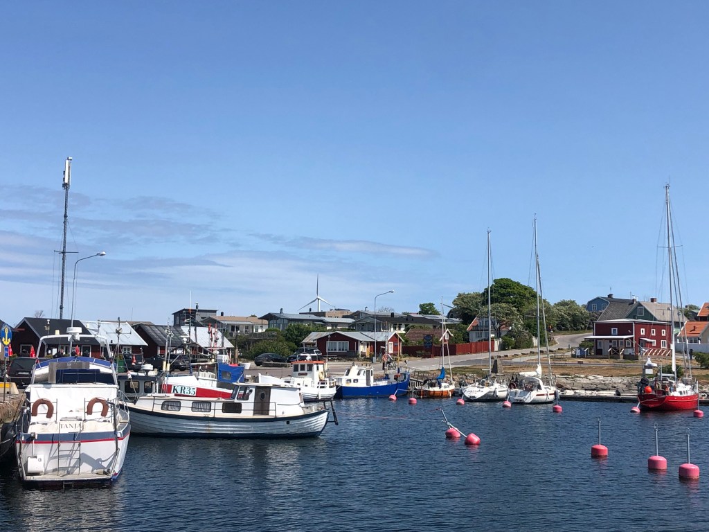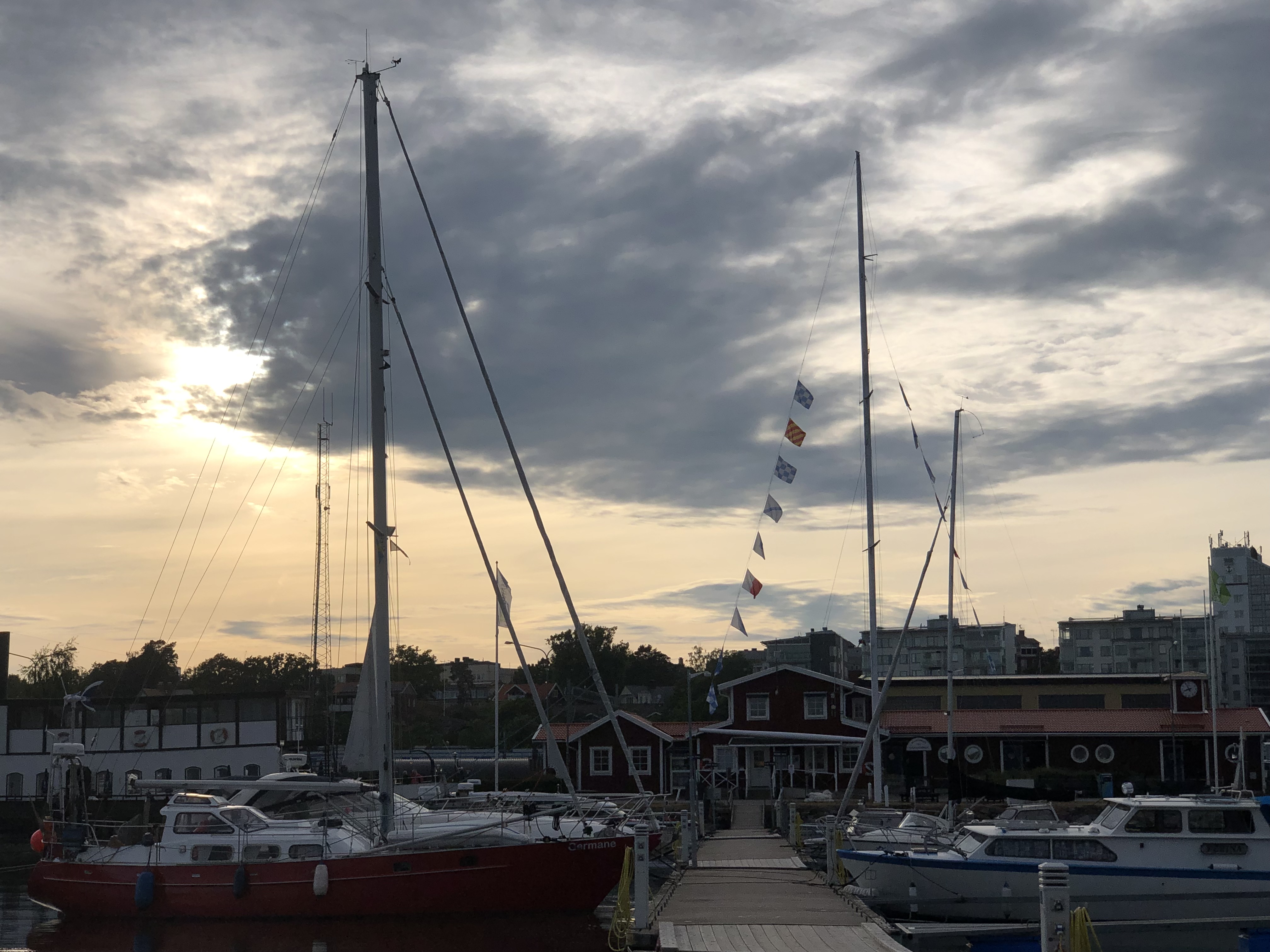 Die 17 Seemeilen konnten wir bei schwachem Wind größtenteils segeln. Es erstaunt uns immer wieder, dass Germane es trotz seiner 16to Gewicht bei 9 Knoten Wind auf knapp 5 Knoten Fahrt schafft (Natürlich nur auf Am Wind Kurs). Für den Office Tag ist dieser Hafen für unsere weitere Routenplanung nach STOCKHOLM günstig gelegen. Finanziell gesehen ist er dies allerdings nicht. Pro Tag sind 50,-€ fällig, Strom kostet 7,-€ extra. Die Freude über den schönen Liegeplatz am Holzsteg war da schnell vorüber. Mehr Liegegeld haben wir bisher nur in St Katherines Docks in London bezahlt und lagen dort in unmittelbarer Nähe zur Tower Bridge. How ever, it is how it is, wie der Franzose zu sagen pflegt. Der Hafen machte jedenfalls einen guten und einladenden Eindruck als wir einliefen. Er war in der Zufahrt flacher als in der Seekarte angegeben und auf dem Weg zum anvisierten Liegeplatz sind wir trotz eingeholtem Schwert über Schlick gerutscht. Der Ort selber ist aus zahlreichen Inga Lindström Filmen bekannt die hier gedreht wurden. Wir freuen uns mehr über die Liebe der Schweden zu Oldtimern und US Cars. Hier findet gerade ein Treffen dieser Scene statt, bei dem wir viele liebevoll restaurierte Oldtimer bewundern.